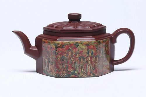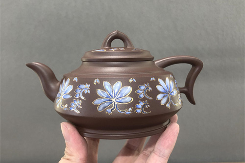 善于在均陶上堆贴的韩小虎,后来转向了紫砂艺术的探索。他注重挖掘紫砂的潜在特性,激发创作灵感,终于在紫砂雕塑和陶刻等领域也有了出色的造诣,尤其是他独创的紫砂堆花艺术,堪称均陶与紫砂艺术的完美结合。